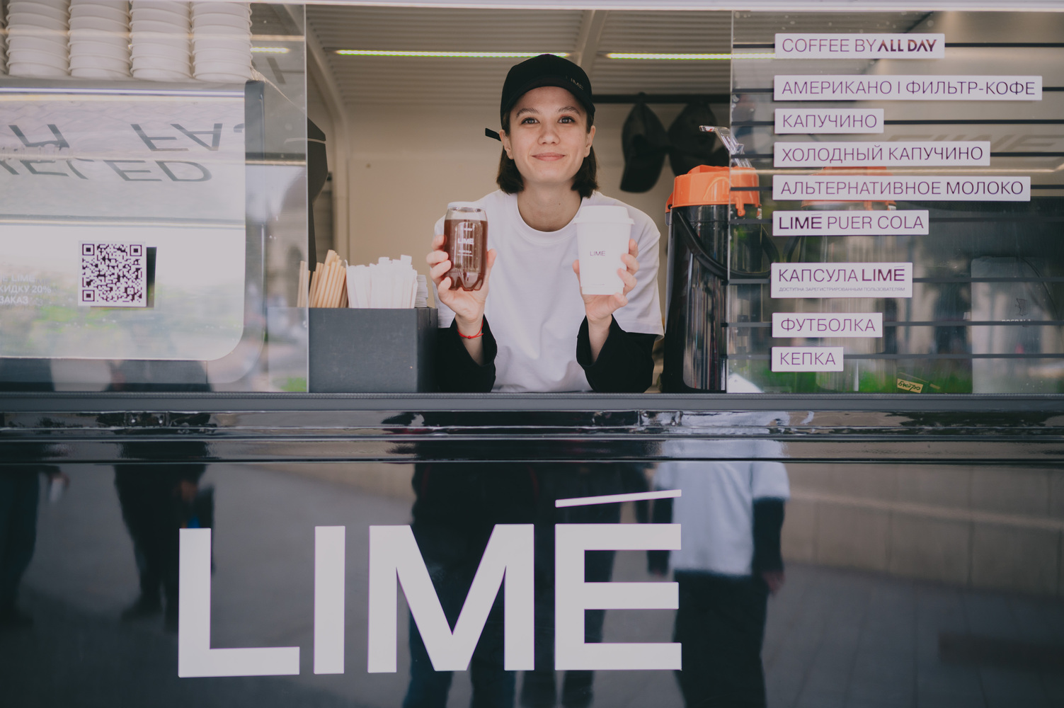 Фотогеничный LIMÉ TRUCK привлекал гостей не только своим внешним видом, но и возможностью купить вкусный кофе от наших партнеров All Day в брендированных стаканчиках и эксклюзивный мерч.