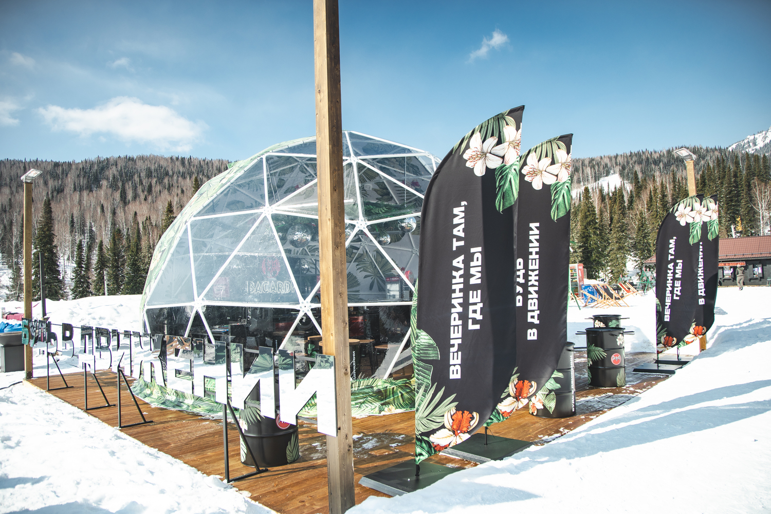 Джунгли посреди заснеженных склонов — так бы мы описали бар, который построили для BACARDI на горнолыжном курорте Шерегеш.