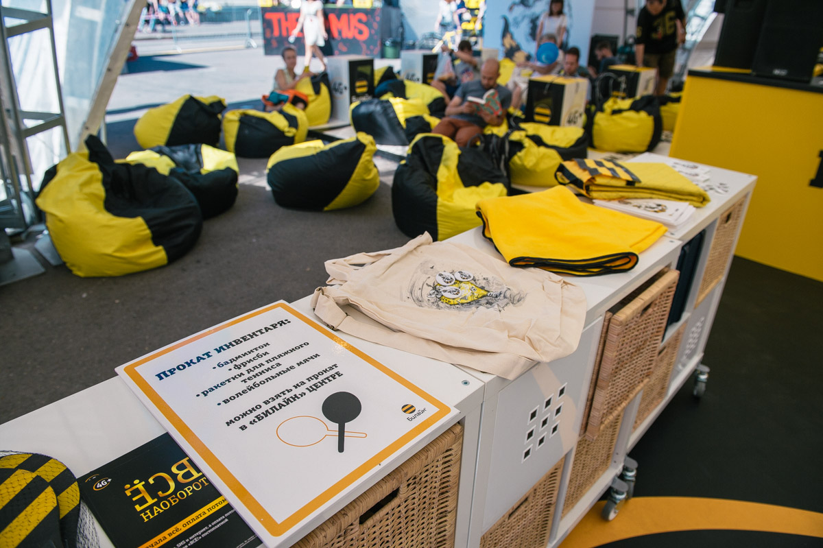 Для поддержки интеграции «Билайн» в несколько крупнейших событий, проходивших в летнем сезоне 2015 года, мы разработали единую модульную концепцию с возможностью форматирования под ЦА событий. Центральная имиджевая зона включала 4 функциональные станции, каждая из которых представляла преимущества основного продукта — скоростного мобильного 4G-интернета. Удобные чарджеры для гаджетов, велопрокат, широкий ассортимент фестивальных сувениров и яркий брендинг сделали бренд максимально заметным на площадках всех ивентов.