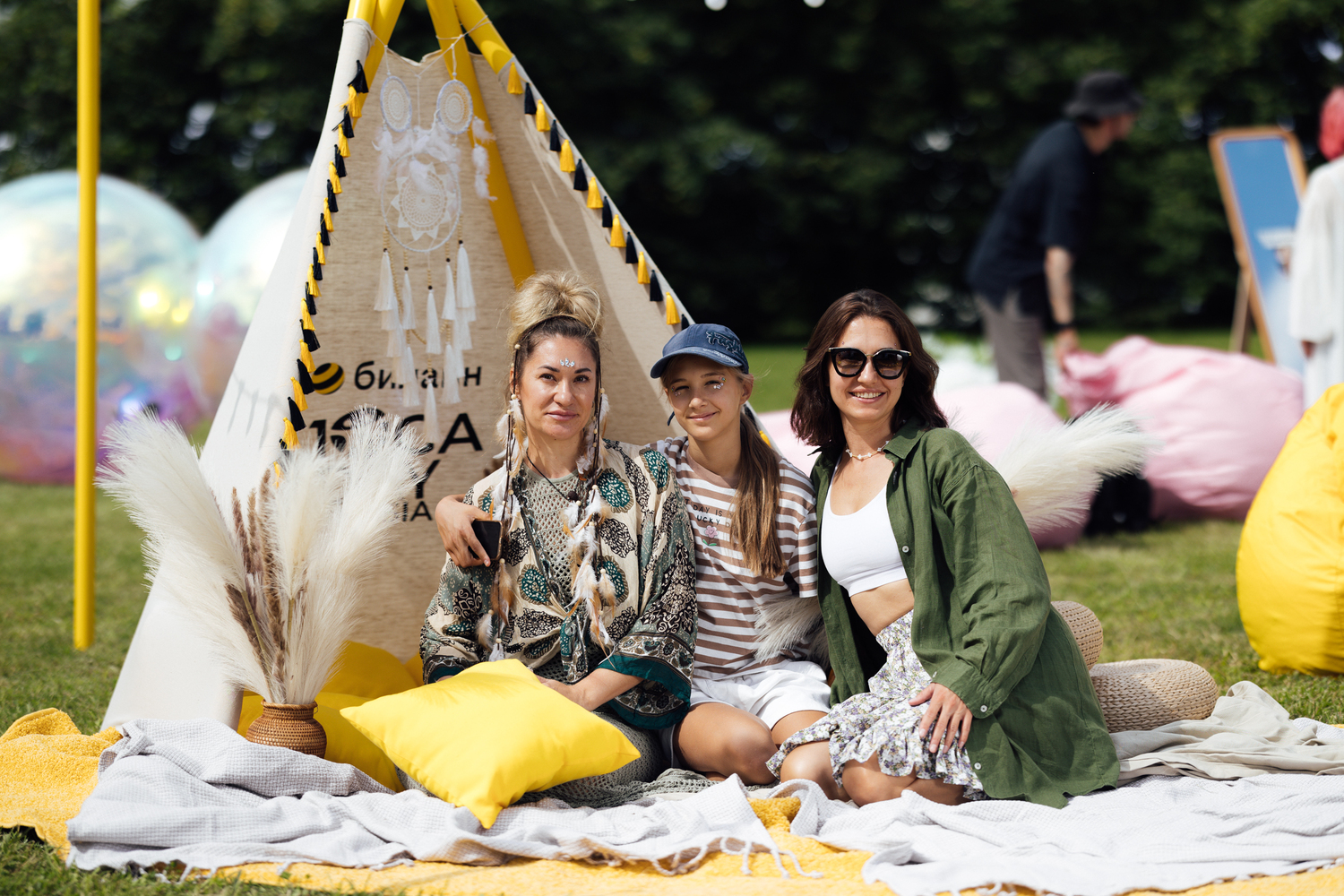 Мы буквально воссоздали тропу с йога-заданиями, где все желающие вдохновлялись небом на огромных мягких пуфах, кидали кубики с асанами из йоги и старались их повторить, рисовали апперов билайна на художественном мастер-классе, фотографировались в вигваме и получали напутствие на будущее с помощью метафорических карт.