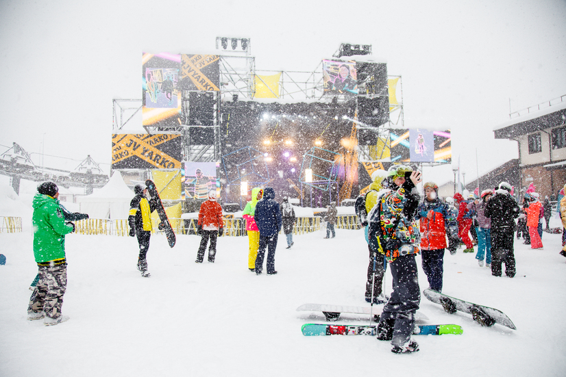 Мы спустили с горы полторы сотни гостей, причем не просто, а в желтых купальниках. Солнце стыдливо спряталось за тучи, потому что в горах и так было слишком ярко. Этого нам показалось мало, и мы устроили карнавальный спуск – сказочные персонажи, мужчины в юбках, пчелки и пираты летели вниз, превращая гору в хаб из фантастической истории. Еще потом был Dj-парад, мощная вечеринка от AFP и Wine Party на катке, естественно 18+.