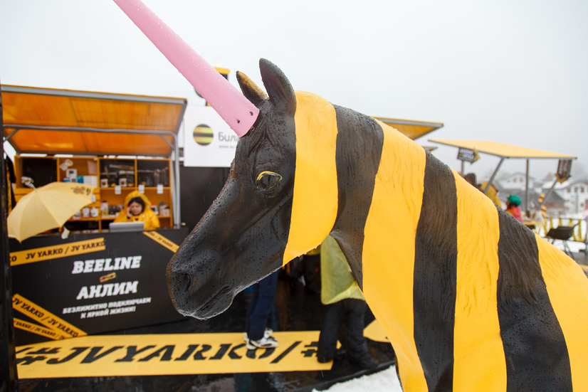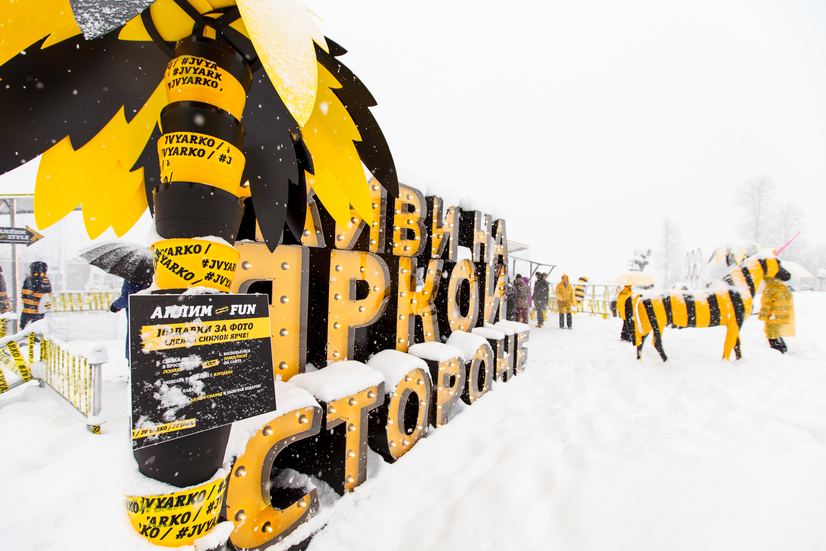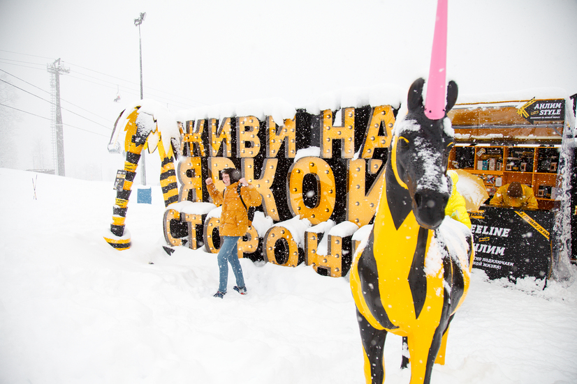 Мы подумали и решили, что должны буквально перенести гостей Розы Хутор и фестивалей на яркую сторону. Бренд-зона “Билайн” – это неизведанная сторона зимы, где неожиданно летний апрески с манящими цветастыми декорациями. Удобные шезлонги и пуфы под пальмами, кастомные качели, фантасмагорические объекты фотоспотов – зебророг и гигантские крылья, удобный чилл с чарджерами, сумасшедший черно-желтый мерч и увесистое расписание самых разнообразных активностей.