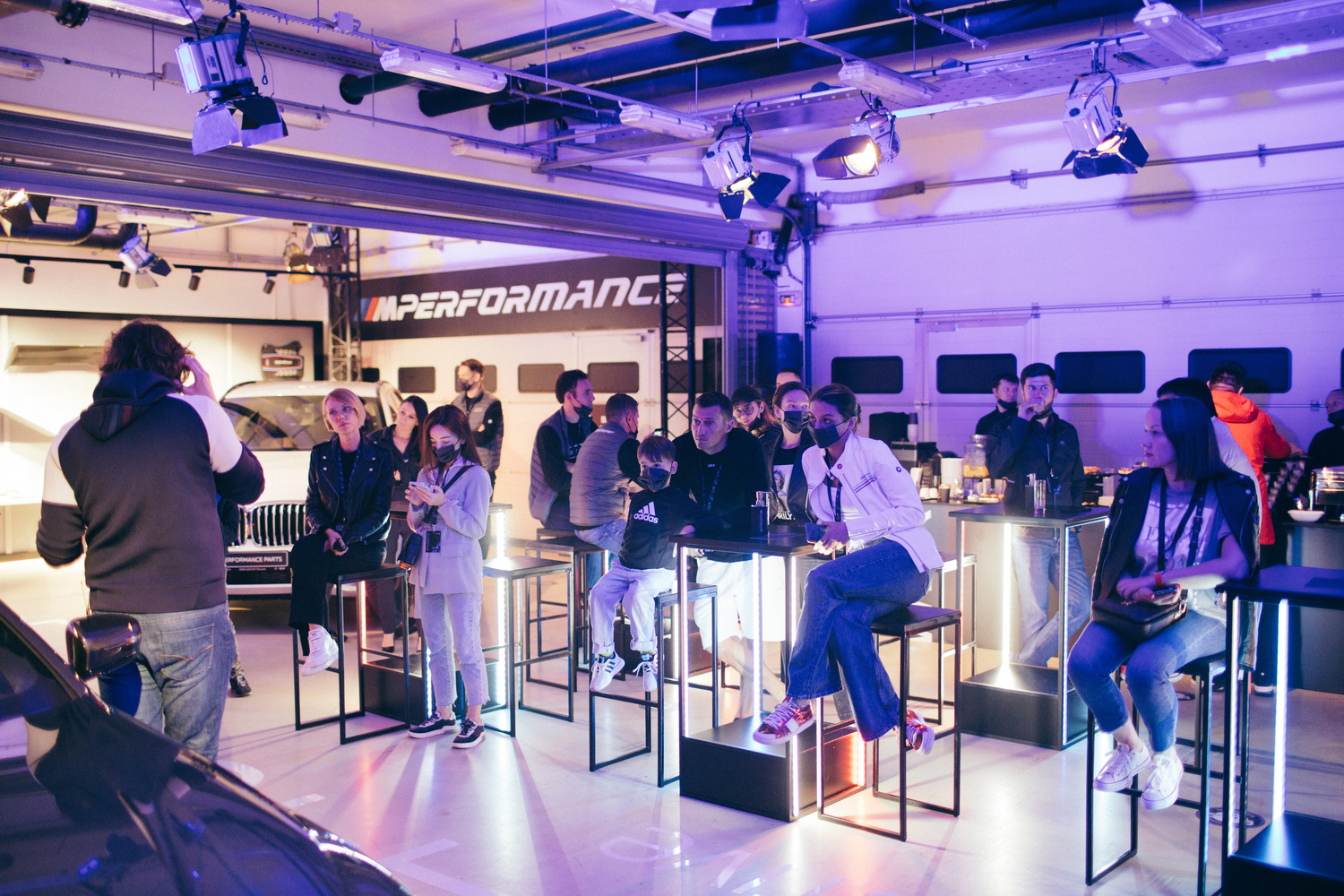 Концепция мероприятия была переработана и усилена: мы использовали новые архитектурные формы и цветовые приемы, и в то же время сохранили узнаваемые черты и атмосферу ///M Weekend. Шесть боксов были объединены в единое пространство — с одной стороны, целостное, а с другой, полное акцентов и контрастов. В рамках концепции мы оформили зоны, входную группу и забрендировали гоночную трассу. Оформление и наполнение передавали мощь и азарт, характер и силу M-подразделения BMW.