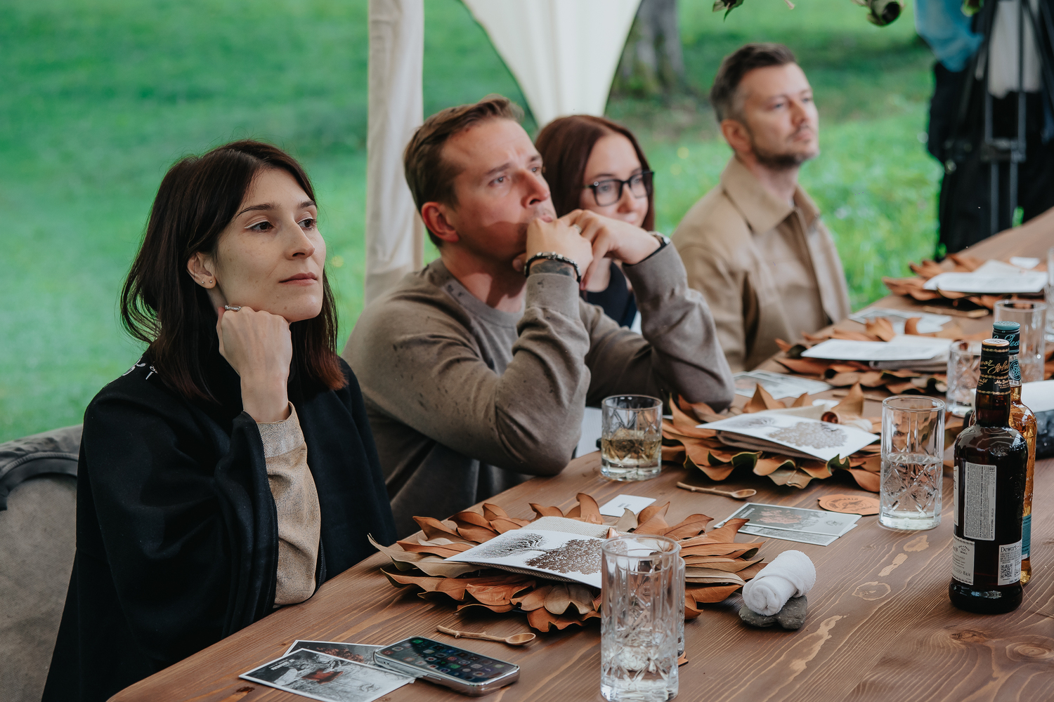 Вместе мы отправились в культурно-гастрономическую экспедицию по России. В июне были в Михайловском, где встретились с мифом о «нашем всём», Пушкине. В сентябре исследовали традиции коренного народа Причерноморья в горах Красной Поляны. В качестве центрального символа проекта мы определили большой общий стол. На нём появлялись и складывались в гастрономические истории блюда, придуманные Владимиром Мухиным. За ним собирались герои нашего времени, движимые любопытством и любовью к жизни.