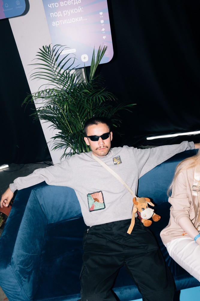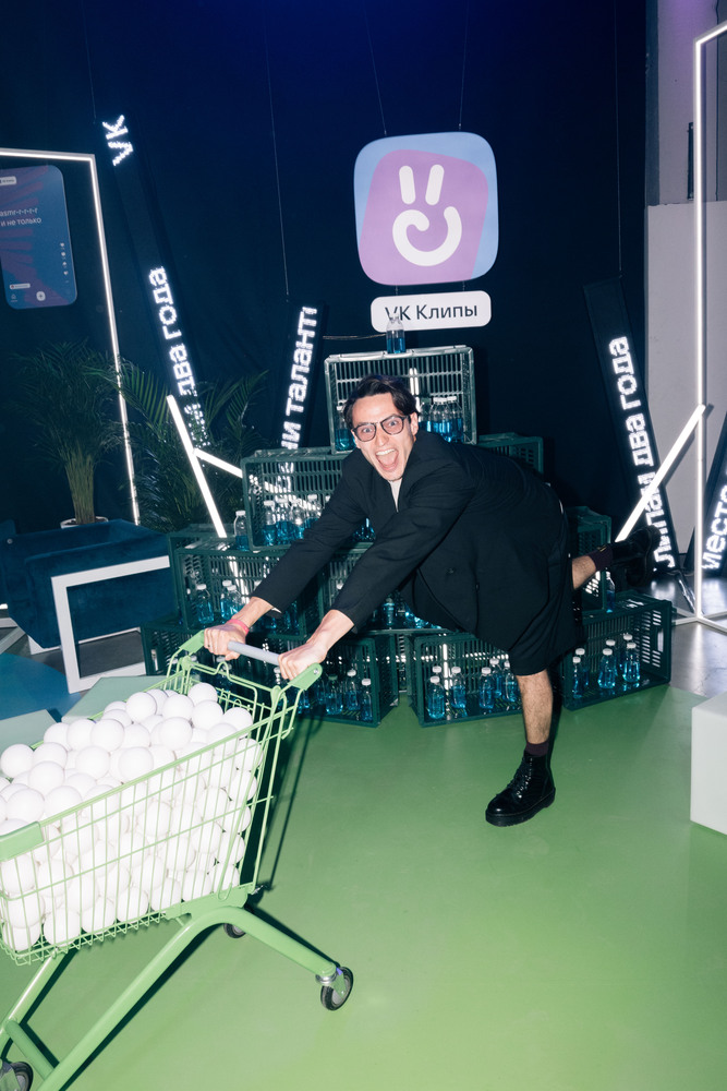 Получилось фотогеничное пространство, где можно отдохнуть, подурачиться и сделать нескучные снимки для соцсетей. Например, залезть в тележку из супермаркета и позировать на фоне лого VK Клипов и пирамиды из ящиков.