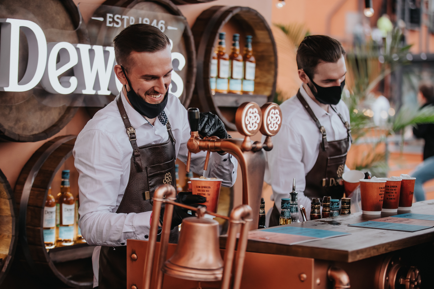 Для путешествия за коктейлями, которые мы готовили на пока ещё новой для фестивальных проектов технологии с драфт-станциями, гостям нужны были паспорта и «визы». Их можно было собрать в точках Dewar’s, в каждой из которых ждал особенный опыт: