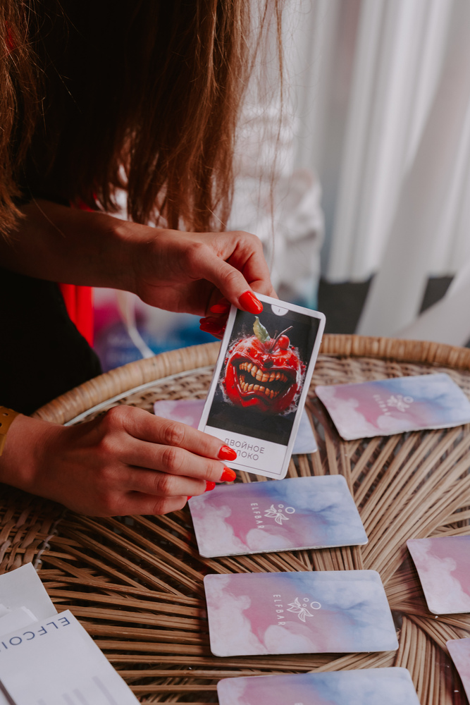 Эльфкоины выдавали каждому гостю на велком-зоне, ими оплачивалось участие в активностях, где разыгрывали призы от бренда. Особенно запомнилась гостям встреча с гадалкой с картами ПАРО. Во входной части зоны мы разместили зоны для дегустации.