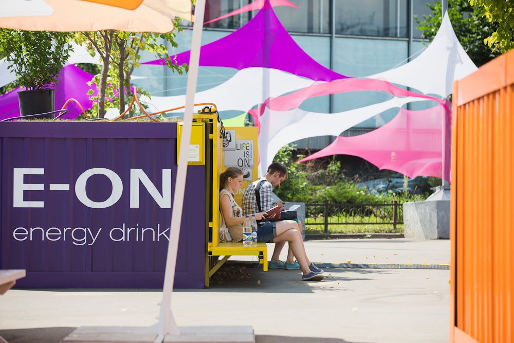 E-ON Smart Park — интерактивная зона отдыха, вдохновленная лучшими идеями современного урбанизма. Пространство «умного» парка E-ON образовали функциональные конструкции из морских контейнеров с высаженными в них живыми деревьями. Здесь можно было зарядить любой гаджет, узнать подробности о программе фестиваля, взять в аренду актуальные настольные и парковые игры, а также принять участие в инстаграм-конкурсе на лучшую фотографию с фестиваля.