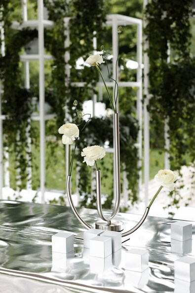Минимализм, акцентные цвета, зеркальные арт-объекты и наш легендарный трак – так мы оформили площадку. Изысканно и концептуально.