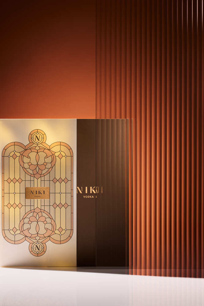 Чтобы подчеркнуть аутентичность Niki, сохранили в дизайне фирменные цвета, отсылающие к латуни, а с помощью граней стекла на упаковке напомнили о вековой истории. Получилось эстетично и ненавязчиво.