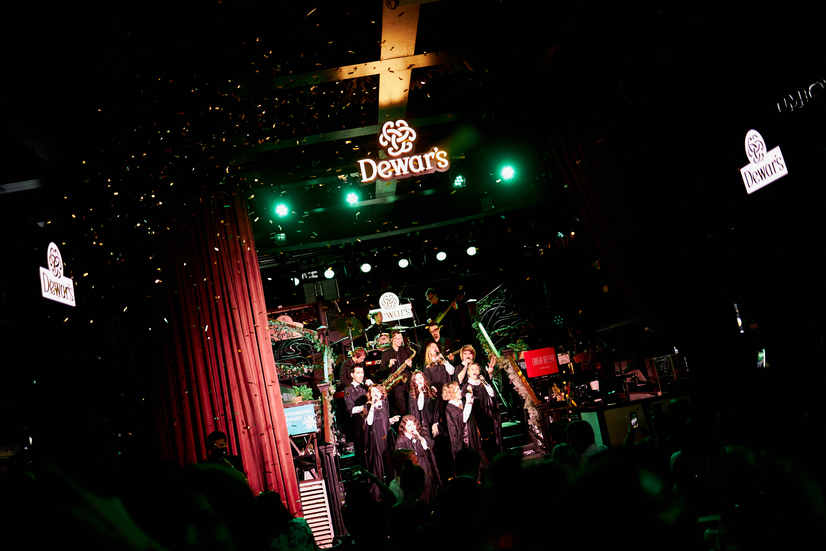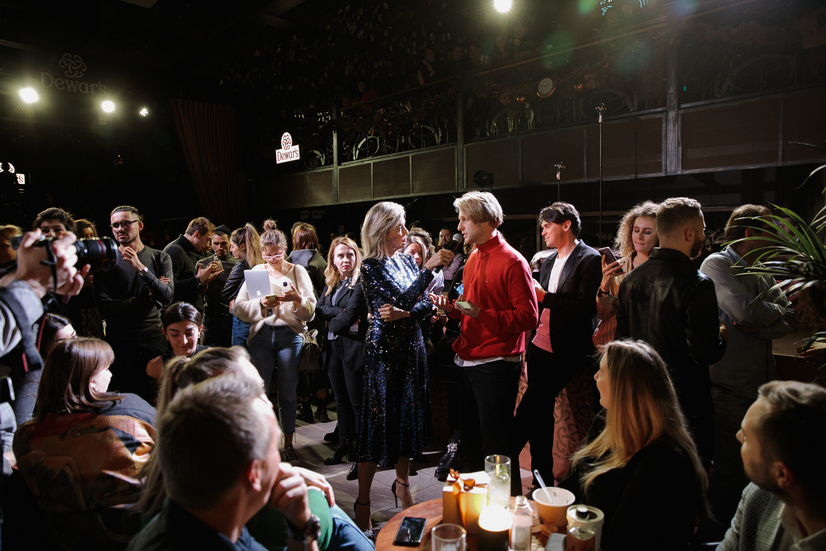 Драматическая канва вечера была построена режиссером и другом JOURNEY Сергеем Яковлевым на трех новогодних историях, полных личных воспоминаний, надежд, ожиданий и переживаний. “Дважды лучше” – так звучит философия Dewar’s, поэтому за каждую историю отвечали по двое героев. Первыми на импровизированной сцене гостей встречали ведущие Ольга Шелест и Антон Комолов. Паппеты, медный таз оливье и забавные рассказы от зрителей, как в старые добрые времена "Бодрого утра". Следующая пара – Никита Ефремов и Мария Ивакова. Ребята поделились своими личными историями из жизни, получилось очень трогательно и откровенно. Красивым финалом стало появление на сцене самой романтичной пары годы – Ксении Собчак и Константина Богомолова, которые читали по ролям Оскара Уайльда.