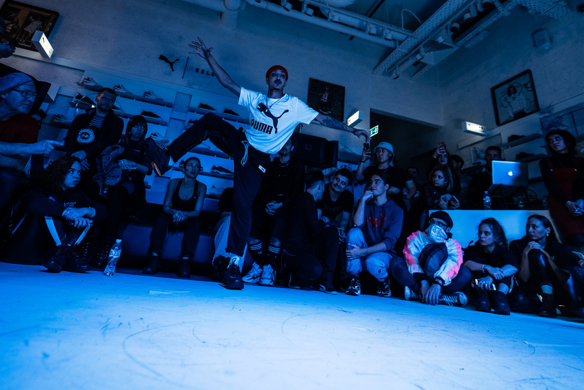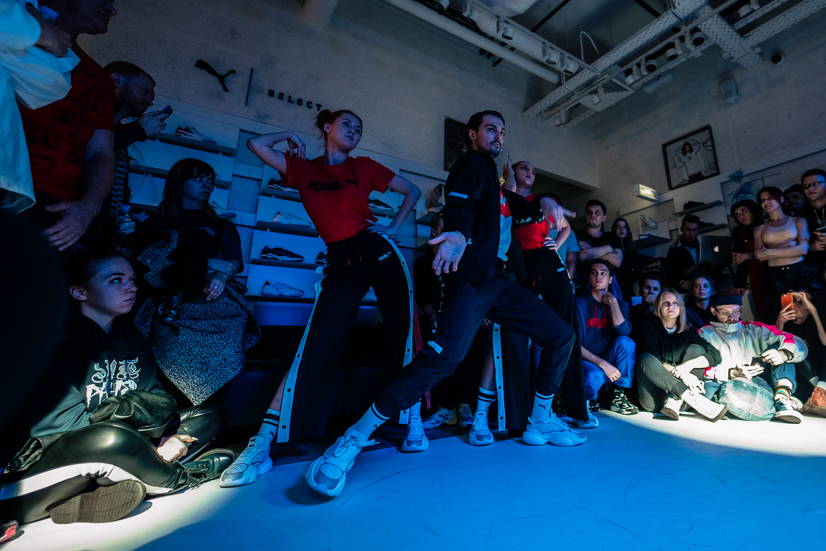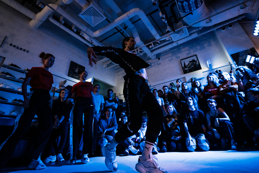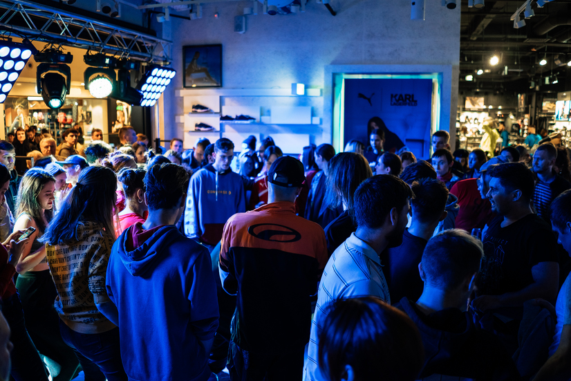 Наверное, все понимают, что магазин — это довольно ограниченная площадка, на которой в буквальном смысле сложно развернуться. Мы любим ограничения, потому что они заставляют мыслить шире. Благодаря такому парадоксальному подходу родилась идея устроить танцевальный джем прямо в магазине. Что может быть лучше тесной и дружной толчеи в красиво акцентированном пространстве?