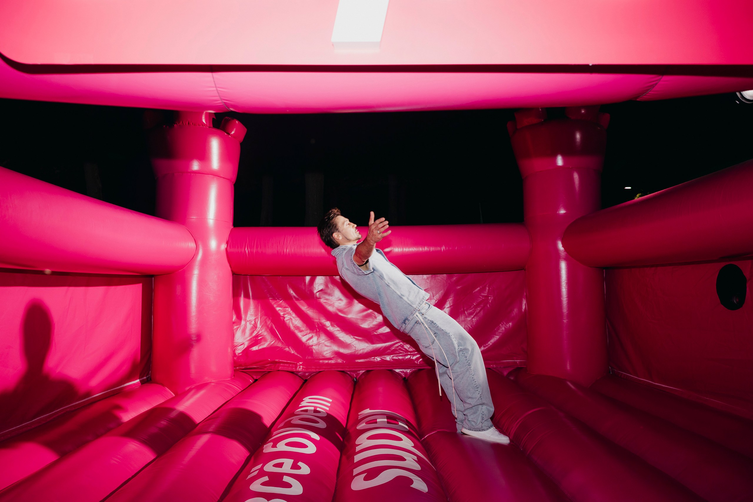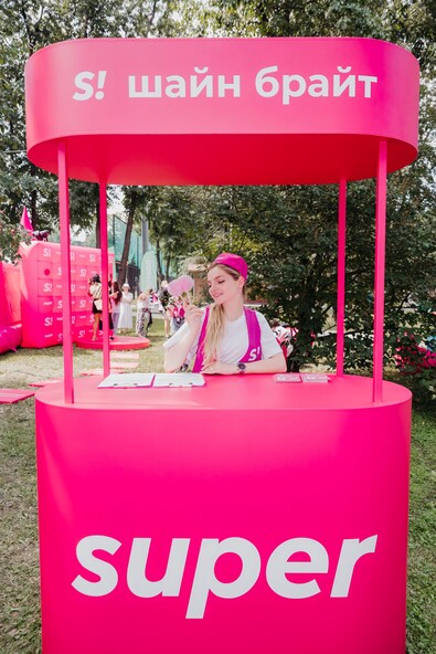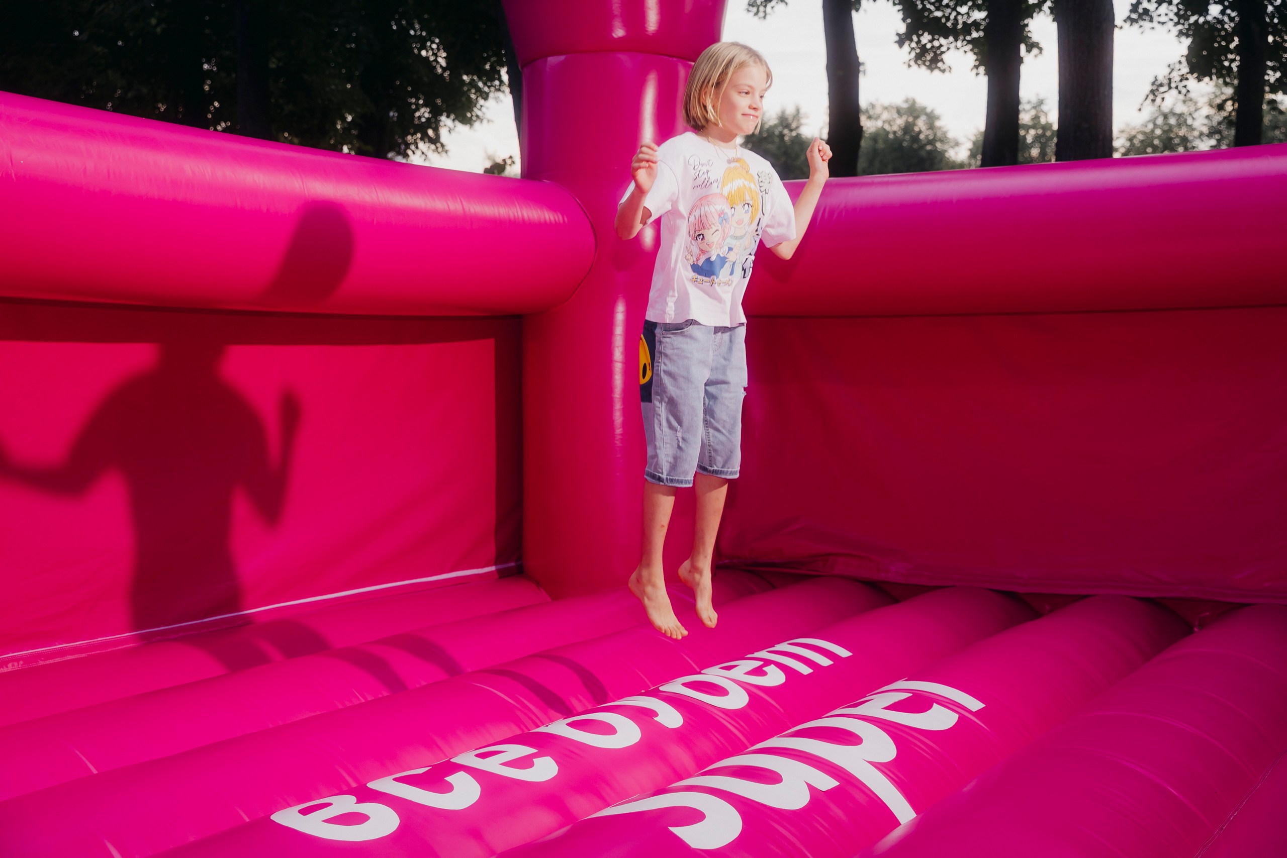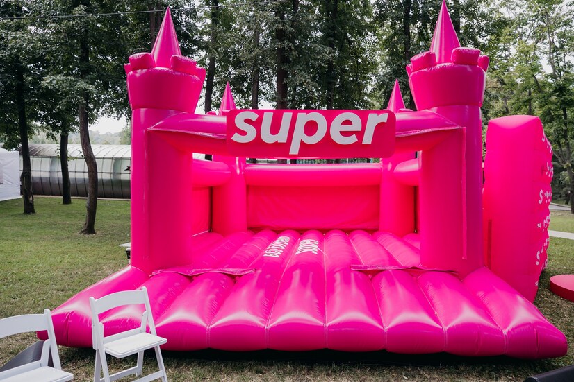 Чтобы утолить жажду прекрасного и порадовать внутреннюю принцессу, мы с командой Super организовали яркую бренд-зону на VK Fest ‘24. Так, мы построили воздушный (батутный) замок, посетить который мог каждый. Чтобы гости не скучали в ожидании своей очереди на батут, мы развлекали их приятными активностями. В глиттер-зоне визажисты наносили желающим блёстки. Рядом с нашим батутным замком была розовая дорожка с забавными названиями аспектов жизни, которые хочется уверенно перешагнуть. Почти каждый посетитель остановился, чтобы её сфотографировать.